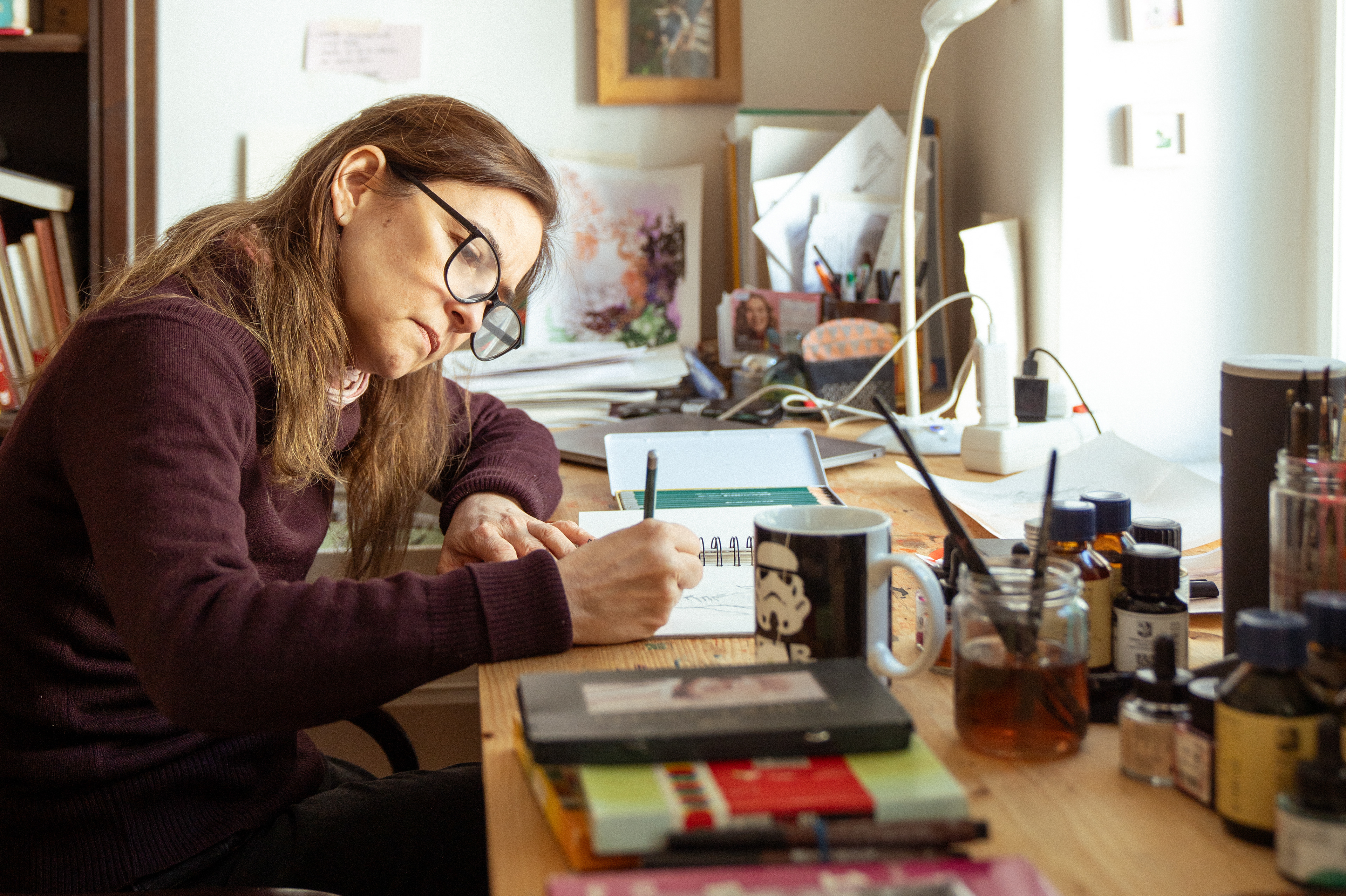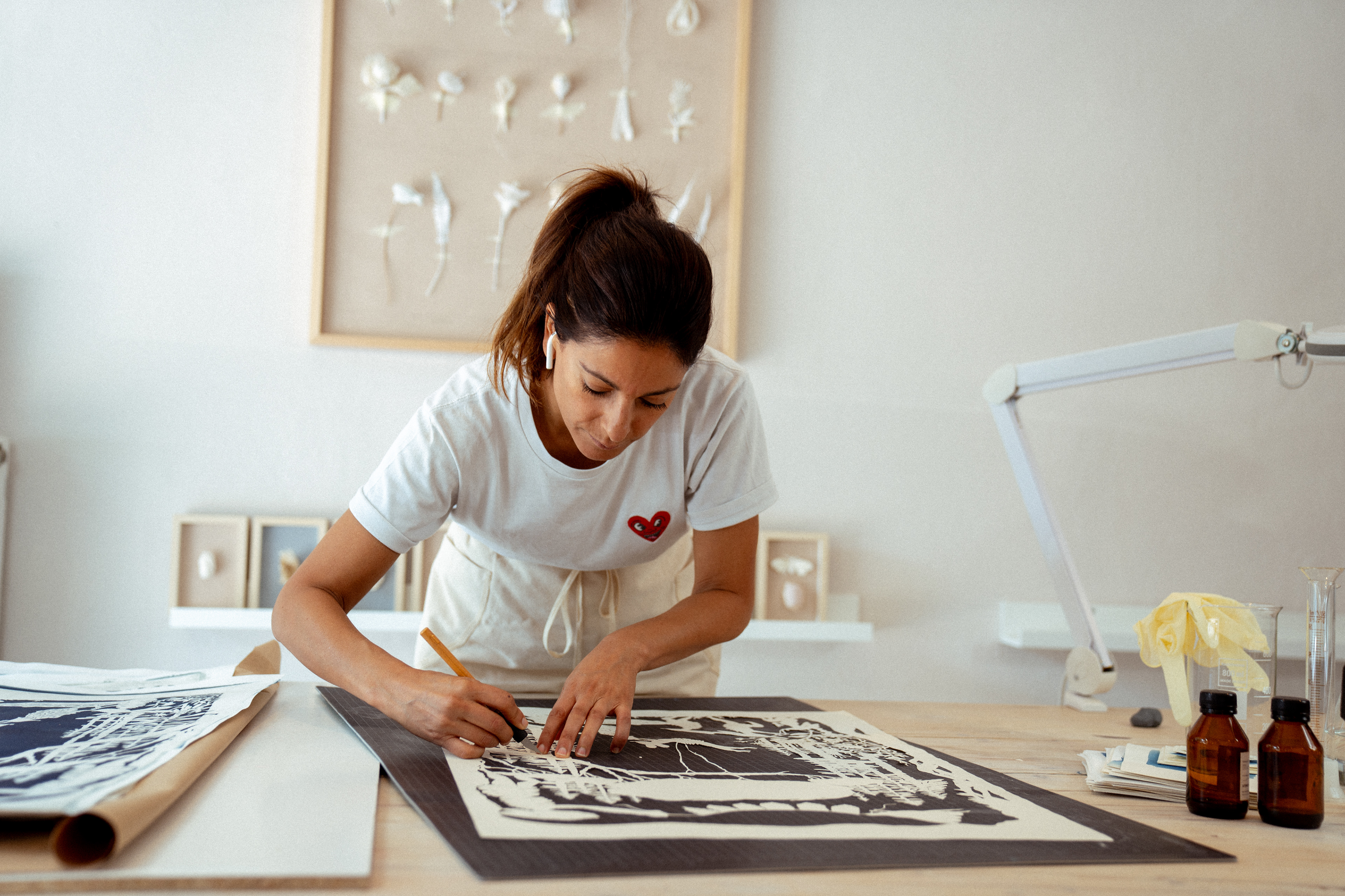 Lucila Biscione, an Argentinian artist, in her Berlin studio.